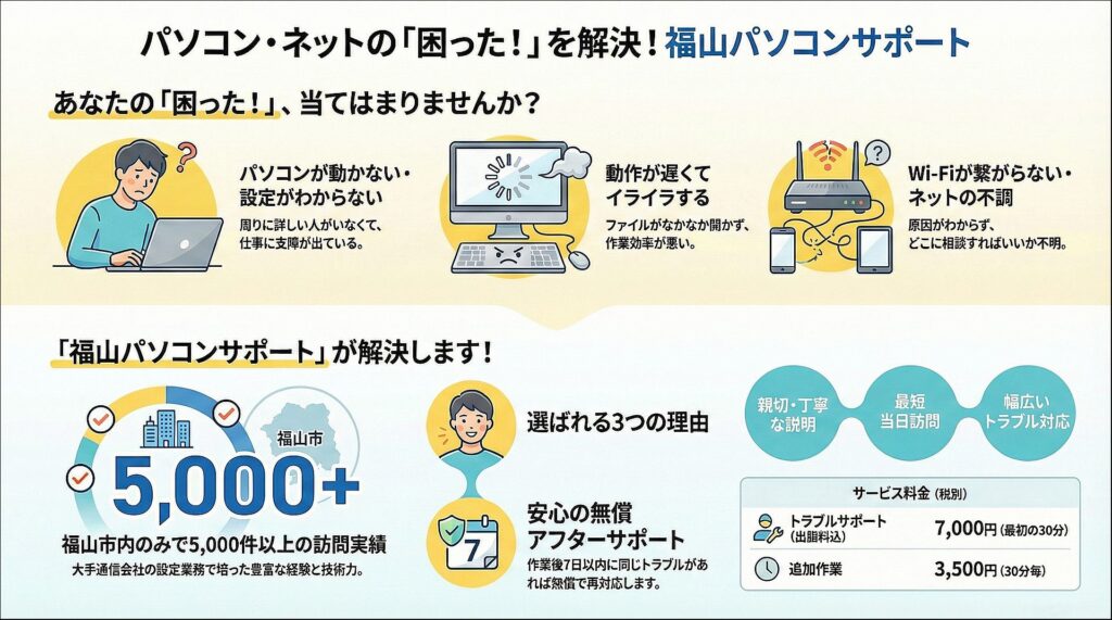 「仕事が止まって困った…」を即解消!最短当日訪問で、業務を止めない安心のサポートに依頼してみませんか?